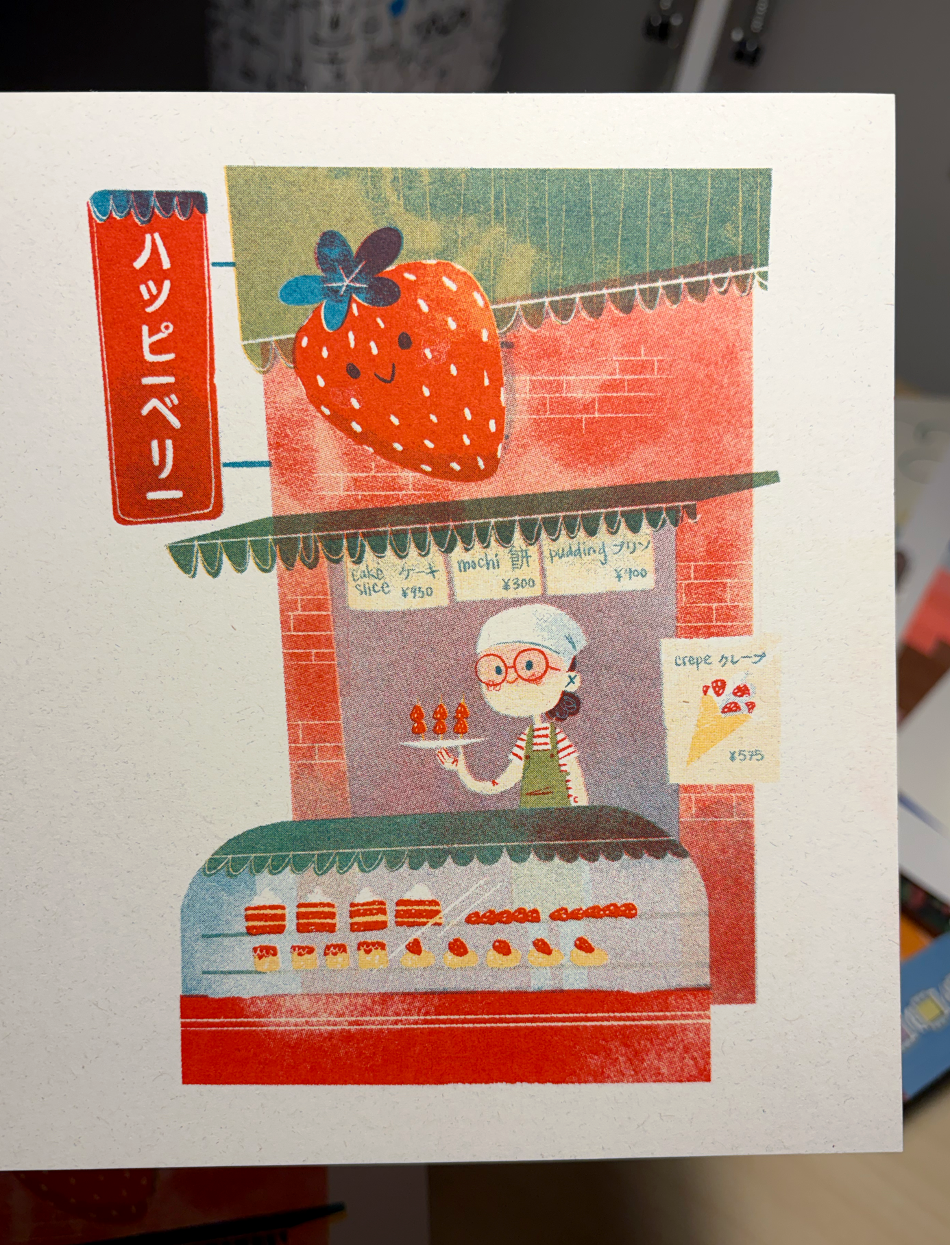 As an illustrator and screen printing fan, RISO let’s me combine my love of both processes by making tangible multiples. I love experimenting with color and translating my drawing style and digital art background into printed matter. I also run a small RISO print shop called Magic Rock! Below are some of my favorite personal RISO pieces that I’ve made over the past few years.